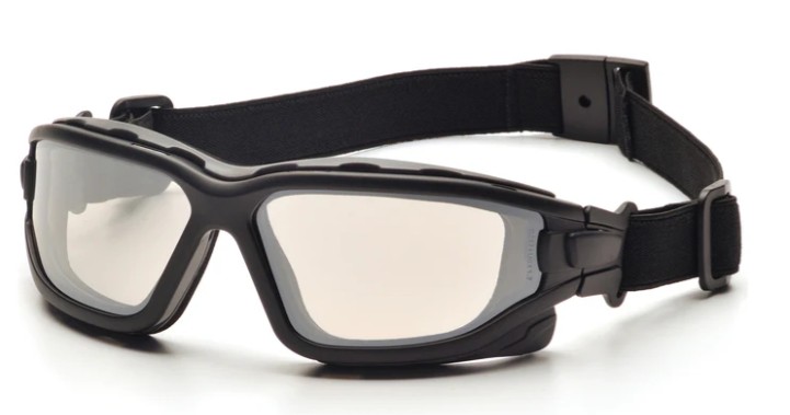 - Outer polycarbonate lens protects against the environment, while inner acetate lens prevents fogging.