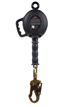 KStrong® BRUTE™ 10′ Galvanized Wire Cable SRL with High Impact Strength Polymer Housing with Built-in Handle, swivel eye at anchorage end, other end with load indicator swivel snap hook. Includes one (1) installation carabiner (ANSI).
