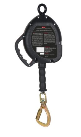 • Quarter turn locking steel carabiner (Our ref. UFC401101) at top and Forged Steel Swivel Snap Quarter Turn Locking Bulb type Hook with Load Indicator at retractable end (Our ref. PN 165A as per ANSI Z359.12-2009; gate strength 3600 lbs.; 0.80” Gate Opening)
