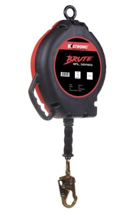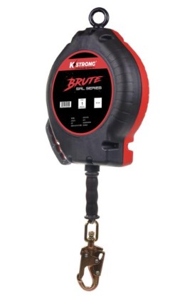 KStrong® BRUTE™ 90’ Galvanized Wire Cable SRL with High Impact Strength Polymer Housing with Built-in Handle, swivel eye at anchorage end, other end with load indicator swivel snap hook. Includes one (1) installation carabiner and one (1) tagline AFZ830100 (ANSI)