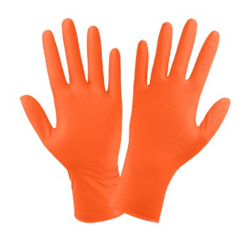 These high-visibility orange gloves are made of 6-mil premium powder-free nitrile. Their raised diamond pattern ensures a better grip than conventional disposable gloves. They are ambidextrous, 9.5 inches in length, and have a rolled/beaded cuff. There are 100 gloves to a dispenser box, 10 dispenser boxes per case. These gloves comply with FDA regulations for food contact and are anti-static/electrostatic compliant for use in an ESD protected area.